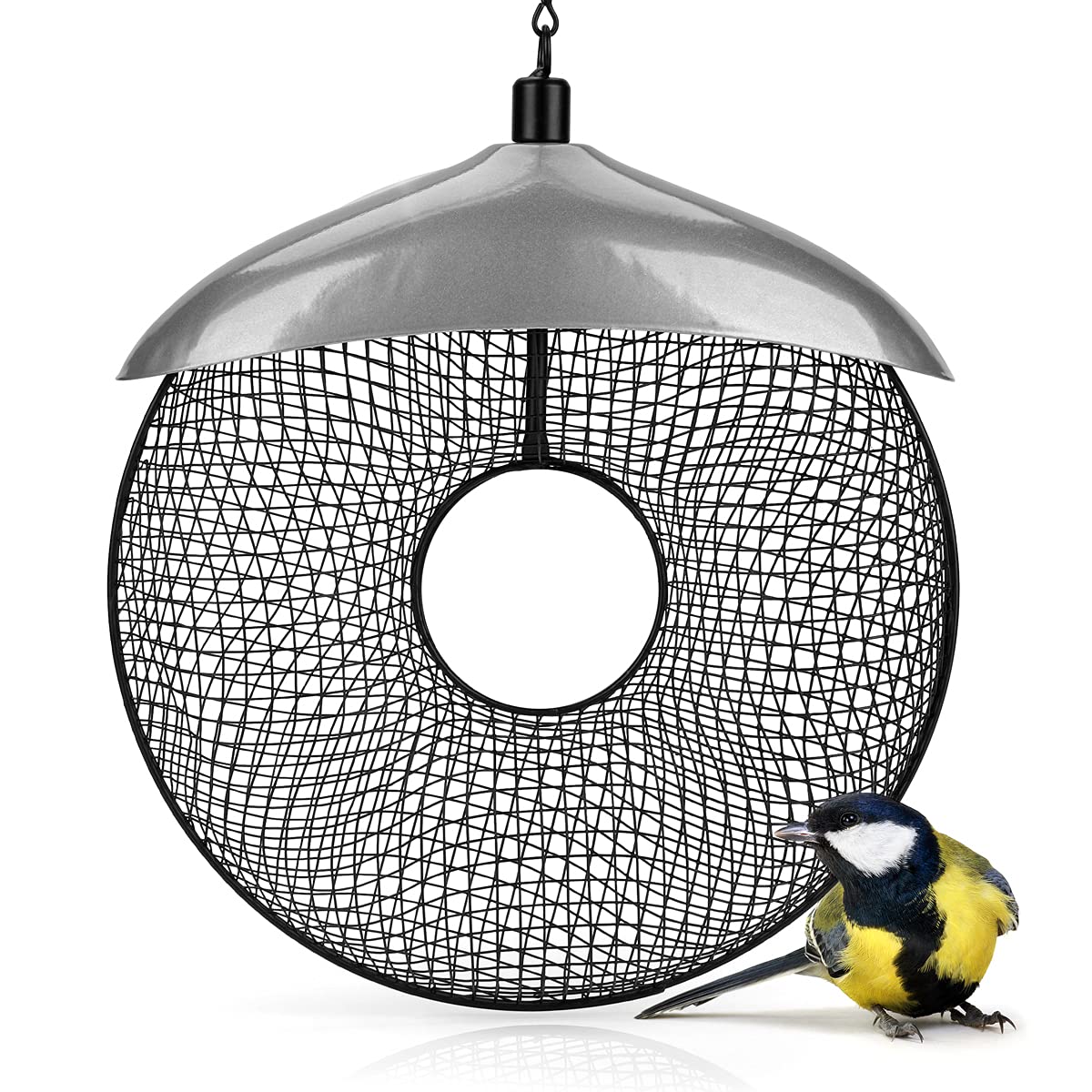 WILDLIFE FRIEND I Bird feeder for peanuts – silver feeding ring – metal feeding station, feeding column for birds for hanging with metal grid – ecological bird feeding |