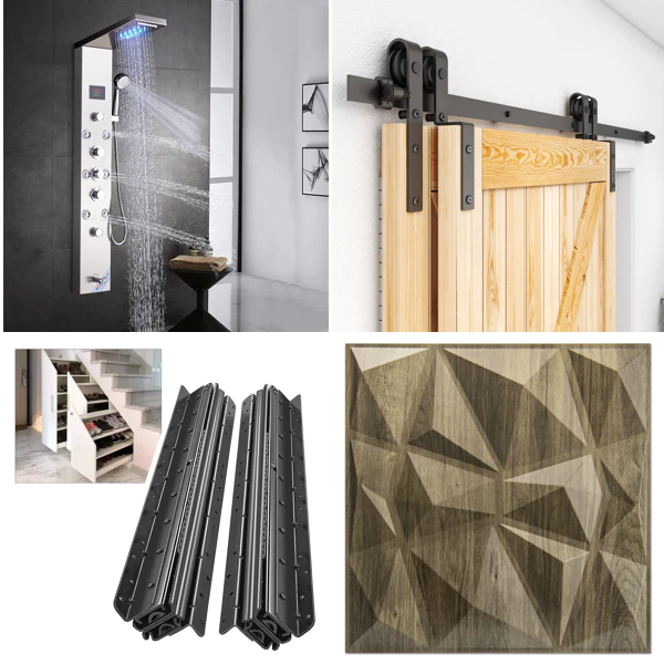 ETIASQSA 244CM 8FT Bypass Sliding Door Fitting Set Sliding Door System Slide Rail Wooden Sliding Door Black |
